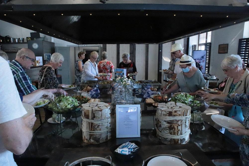 Yhdistyksen järjestämälle teatterimatkalle osallistui 37 jäsentä. Nuorin vasta 39 vuotias ja vanhin 93 vuotias. Pysähdyimme Pivangassa mennen tullen ja perillä nautittiin suussa sulava lounas upeassa Uittotuvassa. Lounas sisälsi mm. vävypojan savusaunassa valmistettua porsaanpaistia ja herkullisia lisukkeita. Maittavan lounaan jälkeen etsittiin parhaan varjopaikat helteisen siestan viettoon ennen teatteriesitystä. Utran saaret tarjosivat mahdollisuuden pieneen jalotteluun ja kävipä nuori kameramies uimassakin. Esityksen ensimmäinen puoliaika tempaisi katsojat hyvin mukaan, vaikka joidenkin silmät hieman lupsahteli maittavan lounaan ja helteisen sään ansiosta. Puoliajalla nautittiin kahvit, leivokset ja jäätelöt omakustanne hintaan. PIenen tauon jälkeen toinen puoliaika sujuikin pirteästi ja vauhti ANOPPILASSA kiihtyi aina loppuaplodeihin saakka.